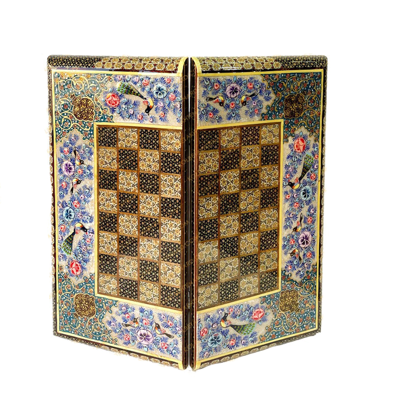تخته نرد خاتم لبه گرد نقاشی گل و مرغ
