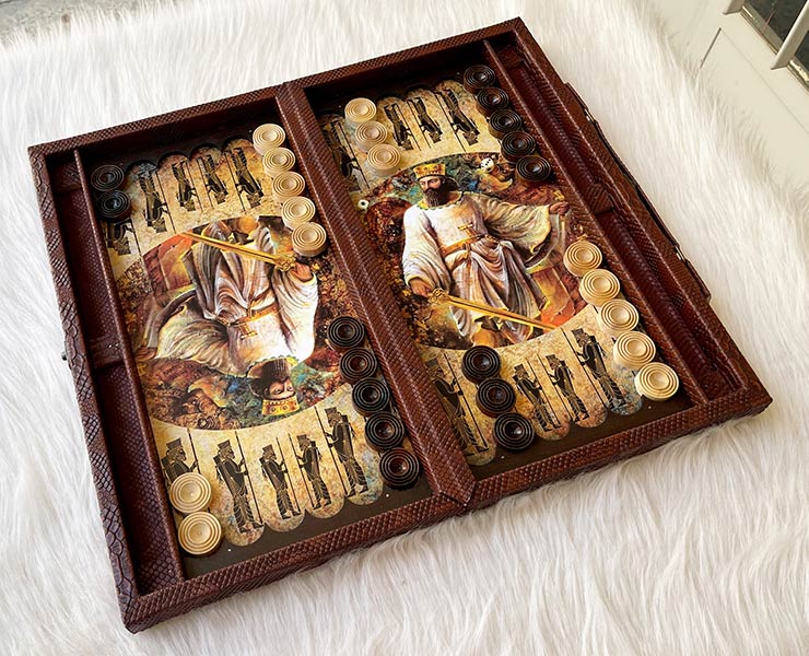 این تخته نرد نه تنها شما را به یک بازی مهیج و سرگرم کننده فرا می خواند؛ بلکه از شما دعوت می کند تا به تماشای ظاهر زیبا و تاریخی آن بنشینید. طرح هخامنشی یکی از طرح های تاریخی است که در این تخته به چشم می خورد. قسمت رویی این تخته یا جلد اصلی آن از جنس چرم مصنوعی است. این چرم از بهترین کیفیت برخوردار بوده و با لمس آن، این کیفیت را لمس خواهید کرد. نه تنها می توانید این تخته نرد را برای منزل خود خریداری کرده و در زمان فراغت و بیکاری به سراغ آن بروید؛ بلکه می توانید این تخته نرد خاص را برای دوستان آشنایان خود نیز خریداری کرده و برای آنها هدیه ببرید.