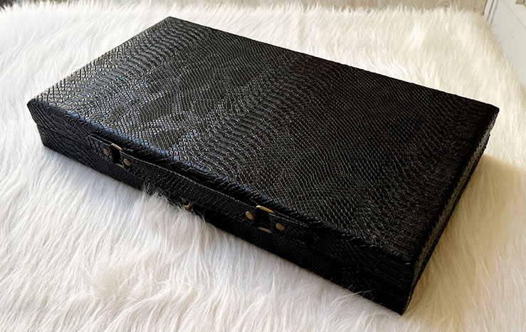 روکش چرمی نیز بسیار ماهرانه برای وسیله اجرا شده است. تخته نرد طرح مینیاتوری دارای قفل می باشد و یک دسته زیبا و جذاب نیز دارا است. بنابراین وسیله در حالتی که بسته شده باشد مانند یک کیف سامسونت به نظر می آید. به این ترتیب بعد از بازی می توانید درب آن را بسته و قطعات بازی را بهتر نگه داری کنید. با این وجود وسیله بهتر قابل حمل می باشد.
