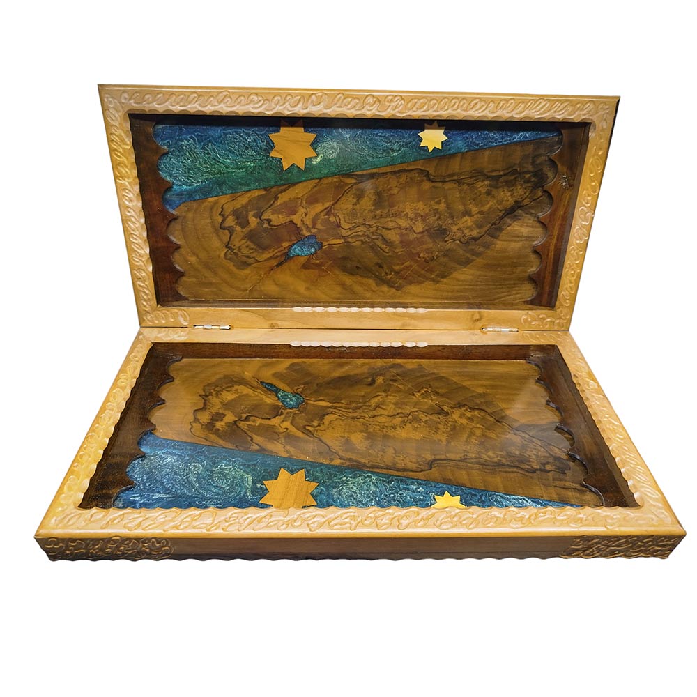 دسته: تخته نرد, تخته نرد چوب گردو, تخته نرد چوبی, تخته نرد منبت کاری