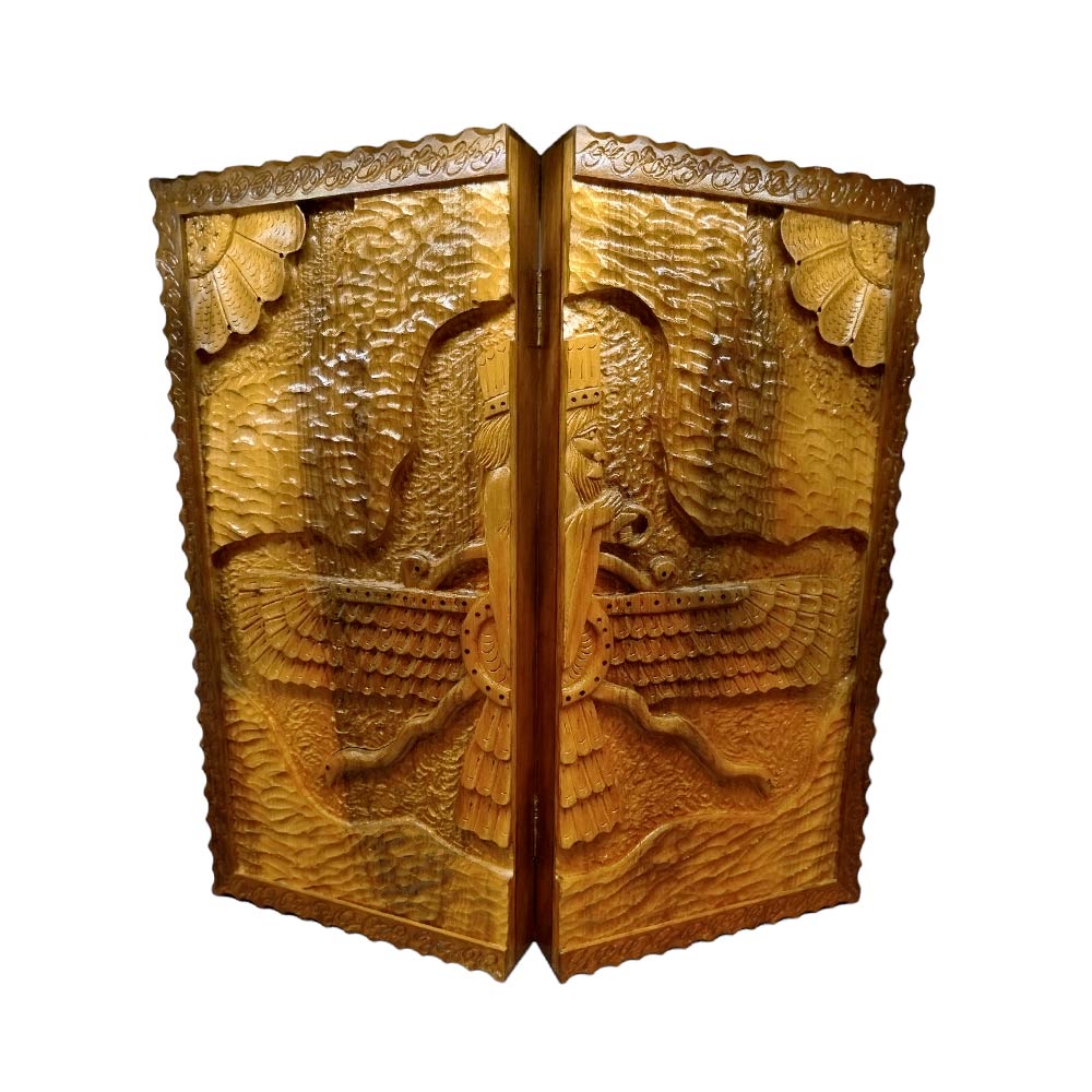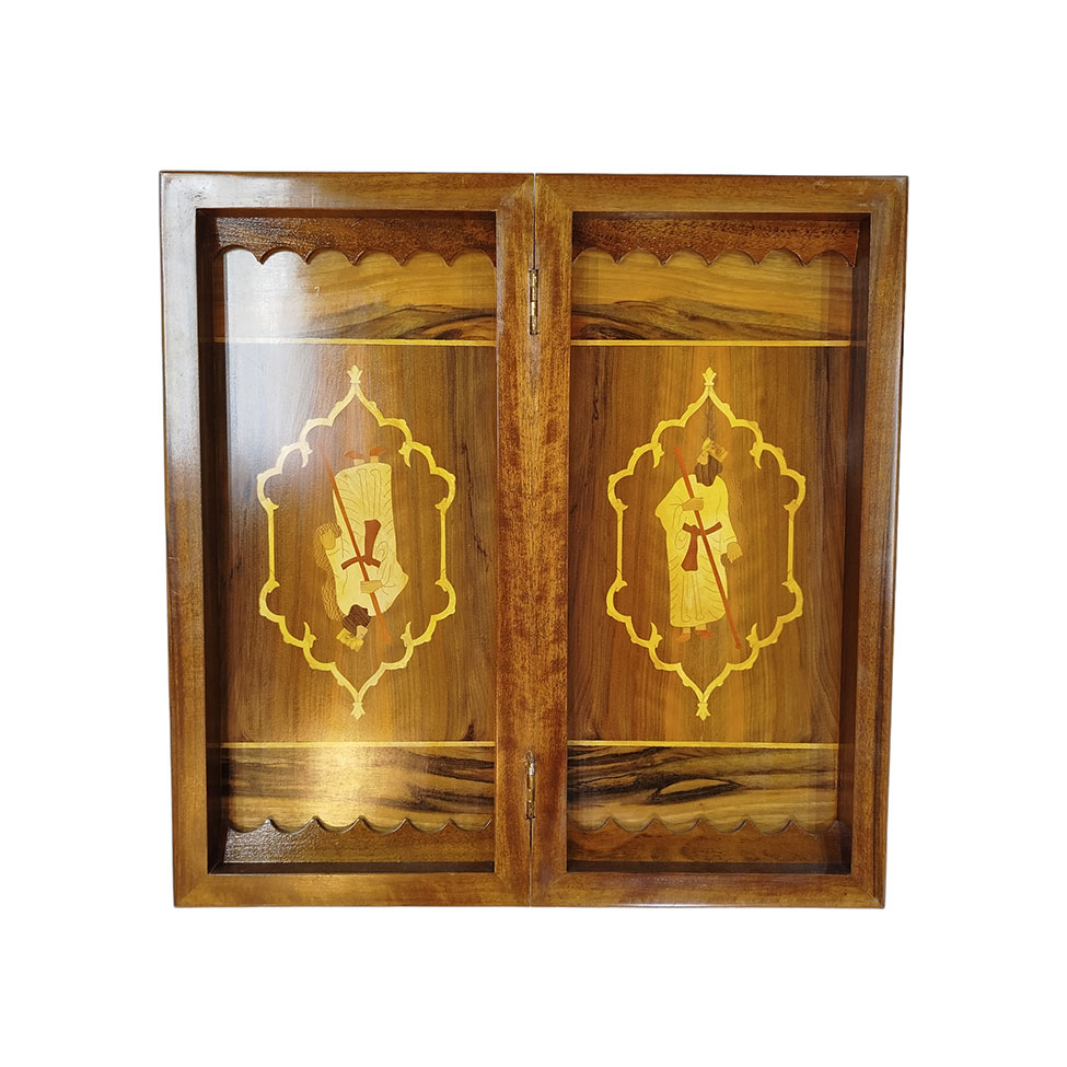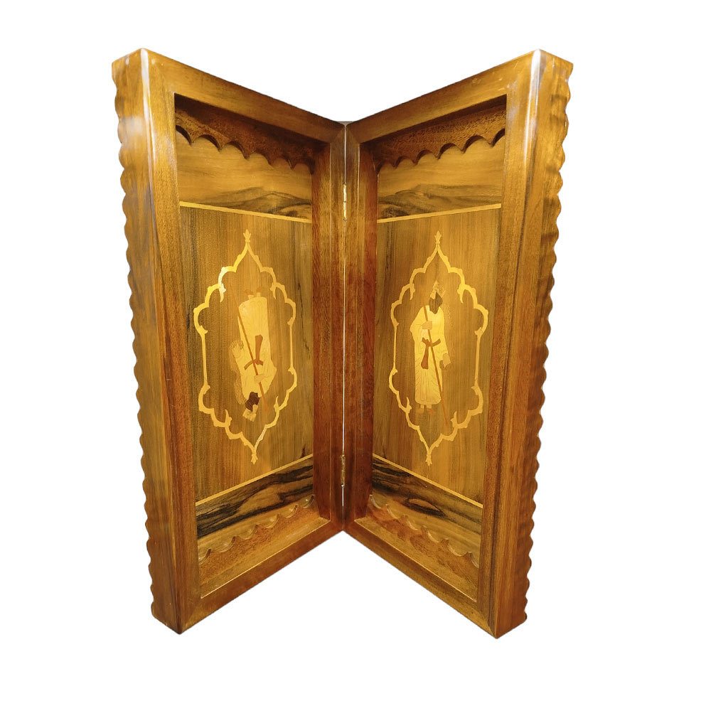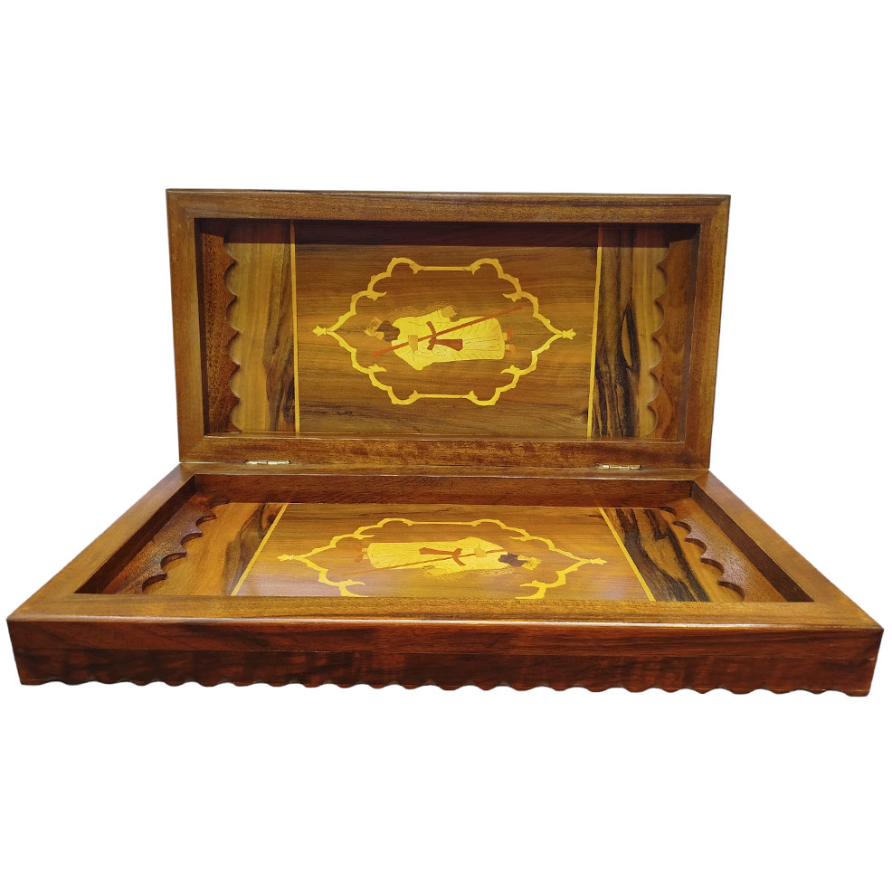 چوب گردو – روکش لاک الکل – طرح داخل معرق سرباز هخامنشی