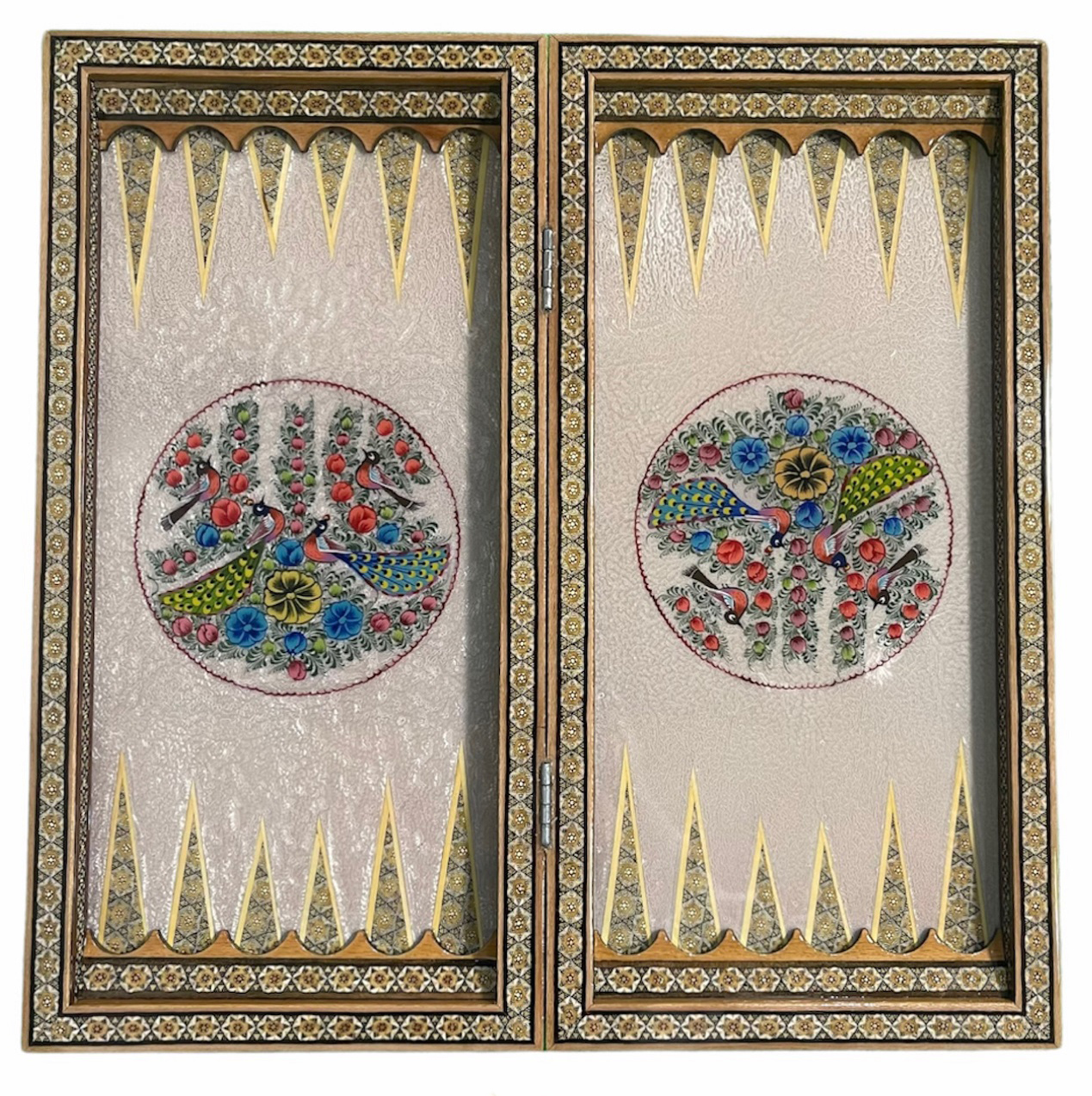 تخته نرد خاتم کاری با نقاشی گل و مرغ