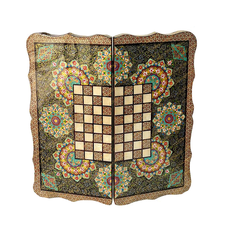 پشت تخته نرد خاتم تذهیب ۶۰ سانتی سفارشی اعلا امکان بازی کردن با شطرنج نیز فراهم شده است. بنابراین، اگر هم به بازی تخته نرد و هم به بازی شطرنج علاقه مند هستید، می توانید این تخته جذاب را انتخاب کنید. پشت تخته نرد نیز با طرح تذهیب طراحی شده و زیبایی فوق العاده تری به آن داده است.