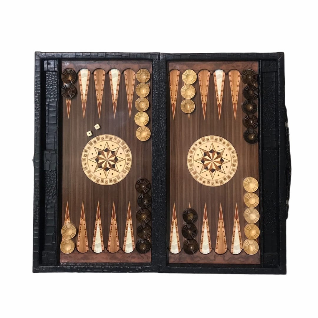 تخته نرد چرم فندقی جا مهره دار