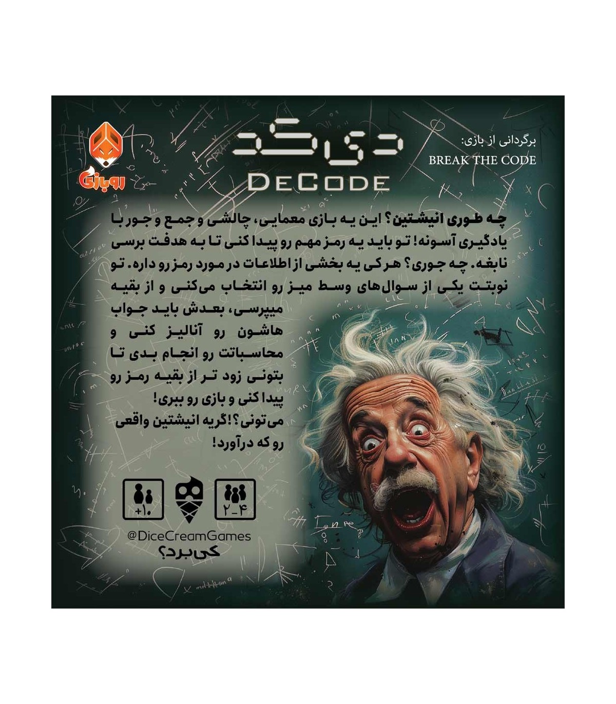 تو این بازی، شما یه جاسوس رمزگشا هستید که باید قبل از رقبا، رمز مخفی رو کشف کنی! 🔢🎴 هدف اینه که با پرسیدن سوالهای هوشمندانه و تحلیل جوابها، اعداد و رنگهای کاشیهای رمز رو حدس بزنی و اولین نفری باشی که رمز رو میشکنه. هر بازیکن در نوبت خودش یکی از کارتهای سوال رو انتخاب میکنه و از بقیه بازیکنا سوال میپرسه تا اطلاعات بیشتری درباره رمز به دست بیاره. باید با دقت و استراتژی، جوابها رو تحلیل کنی و حدسهای درست بزنی. اولین نفری که بتونه تمام کاشیهای رمز رو درست حدس بزنه، برندهی بازی میشه! بازی پر از لحظات هیجانانگیزه و باید همیشه یه قدم از رقبا جلوتر باشی. اگه دوست داری بازیهای فکری چالشی و استراتژیک رو تجربه کنی، این بازی قطعاً برات جذابه!