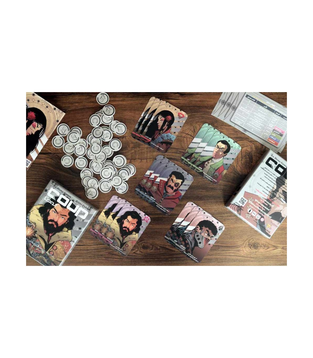 تو این بازی، شما یه عضو بلندمرتبهی دولت هستید که در یه دنیای آیندهای نه چندان دور، تلاش میکنید تا با استفاده از نفوذ، تطمیع و فریبکاری، رقبای خود رو از بین ببرید و به قدرت مطلق برسید. 🕵️♂️💼 هر بازیکن دو کارت شخصیت داره که نشون میده بر روی کدوم بلندپایگان حکومتی نفوذ داره. هدف اینه که نفوذ رقبا رو از بین ببرید و اونها رو به ناکجاآباد تبعید کنید تا تنها بازمانده در نهاد قدرت باشید! در هر نوبت، یه اقدام انتخاب میکنید و بقیه بازیکنها میتونن شما رو به چالش بکشن یا با اقدام شما مقابله کنن. اگه اقدام شما به چالش کشیده نشه یا مقابلهای صورت نگیره، با موفقیت انجام میشه. اگر یکی از شخصیتهای تحت نفوذتون رو از دست بدید، باید یکی از کارتهاتون رو “رو” کنید و اون کارت دیگه هیچ سودی براتون نداره. اگه هر دو کارتتون رو از دست بدید، از بازی خارج میشید و سکههاتون به خزانه میره. بازی تا زمانی ادامه پیدا میکنه که فقط یه بازیکن باقی بمونه و اون بازیکن برنده بازی میشه!