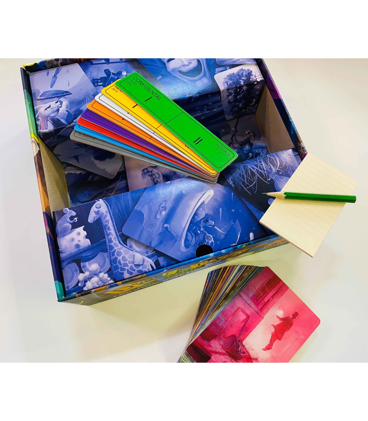 تو این بازی، شما به عنوان یه کارآگاه تازهوارد به “باشگاه کارآگاهان” دعوت شدید. اما قبل از اینکه عضو بشید، باید ثابت کنید که یه کارآگاه واقعی هستید! 🔍🕵️♂️ هدف اینه که با بررسی شواهد و مدارک، شاهدان رو زیر نظر بگیرید و دروغگو رو شناسایی کنید. هر بازیکن یه نشانگر رنگی و یه ذرهبین داره که بهش کمک میکنه تا مدارک رو بهتر بررسی کنه. در هر دور، یه بازیکن نقش “شاهد” رو بازی میکنه و بقیه بازیکنها باید با استفاده از دفترچههاشون، اطلاعات رو جمعآوری کنن و دروغگو رو پیدا کنن. بازیکنی که بتونه بهترین تحلیل رو داشته باشه و دروغگو رو شناسایی کنه، برندهی بازی میشه!