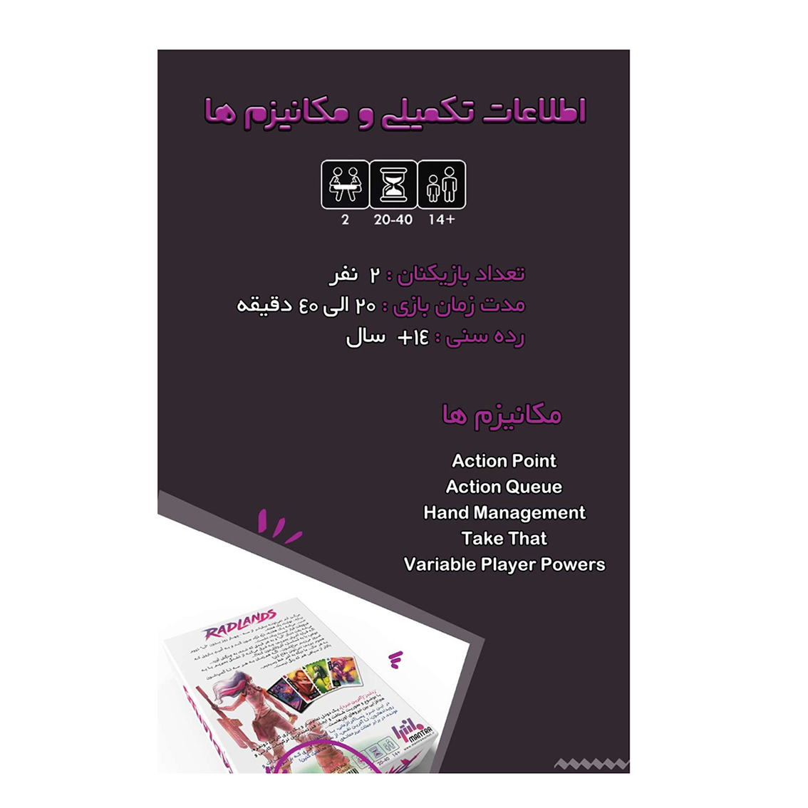 تو این بازی، شما وارد یه دنیای پساآخرالزمانی می‌شید که آب، ارزشمندترین منصبه! 🌊🔥 هر بازیکن ۳ کمپ داره که باید ازشون در برابر حملات حریف دفاع کنه. هدف اینه که با استفاده از کارت‌های “نفر” و “رویداد”، کمپ‌های حریف رو نابود کنید و برنده‌ی بازی بشید! هر نوبت بازی ۳ مرحله داره: 1️⃣ رویدادها: کارت‌های رویداد رو فعال کنید و تأثیرشون رو اعمال کنین. 2️⃣ پُر کردن: ۳ توکن آب جمع‌آوری کنید و یه کارت جدید بکشید. 3️⃣ عملیات‌ها: کارت‌ها رو بازی کنید، بسوزونید و از قابلیت‌هاشون استفاده کنید. آب، عنصر اصلی بازی‌ست و باید با دقت ازش استفاده کنید. کارت‌های “نفر” از کمپ‌ها محافظت می‌کنن و کارت‌های “رویداد” تأثیرات قدرتمندی دارن. باید با استراتژی و هوشمندی، کارت‌ها رو ترکیب کنید و از کمپ‌هاتون دفاع کنید تا برنده‌ی بازی بشید! برنده بهترین بازی 2 نفره سال 2021