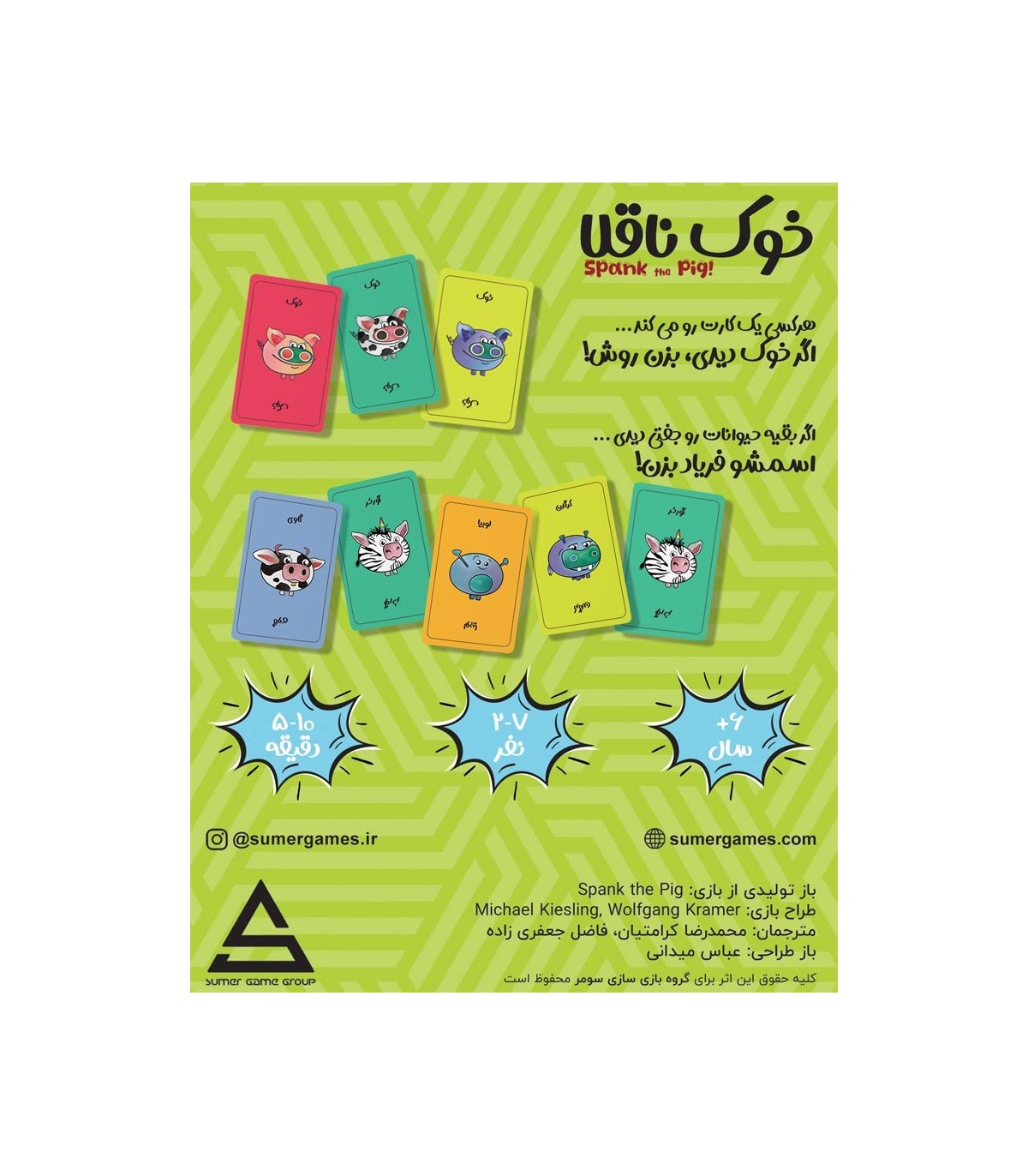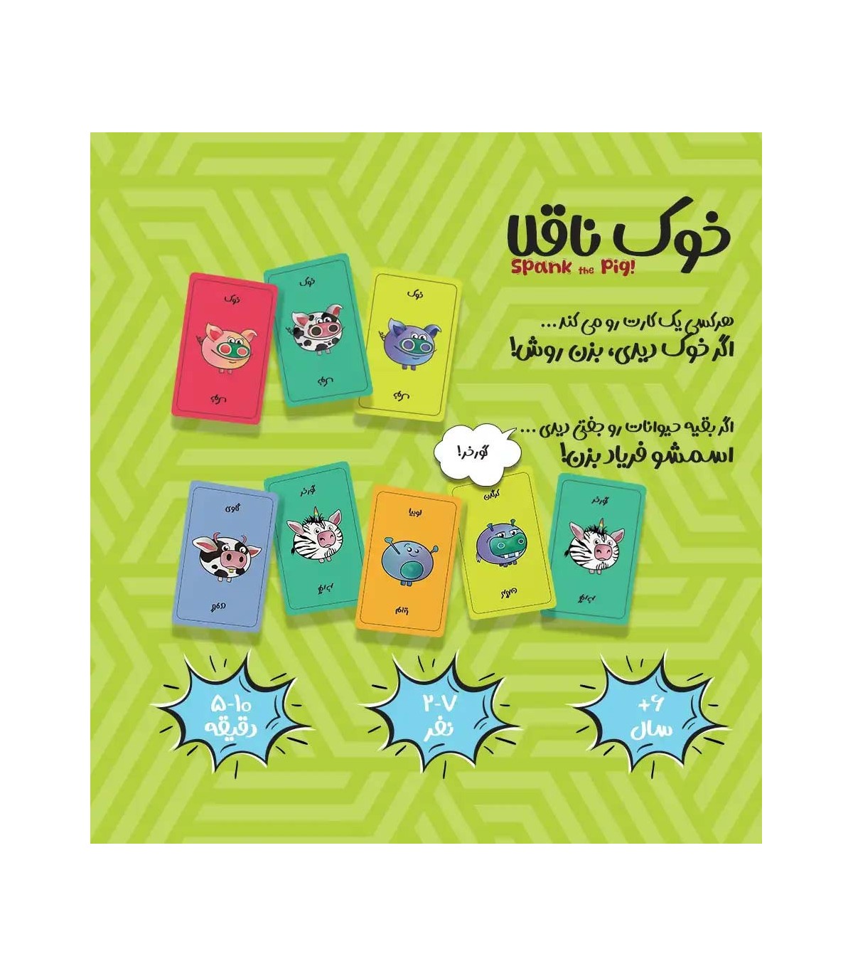 تو این بازی، شما باید خوکهای ناقلا رو با سرعت و دقت اسپنک کنید تا امتیاز منفی نگیرید! 🐷👋 هر بازیکن به نوبت کارتها رو رو میکنه و به محض دیدن کارت خوک، باید سریع به اون ضربه بزنه. اما مراقب باش! اگه به کارتهای دیگه ضربه بزنی یا جفتهای اشتباه رو اعلام کنی، امتیاز منفی میگیری. هدف اینه که کمترین امتیاز منفی رو داشته باشی و عنوان “قهرمان اسپنک” رو به دست بیاری. بازی پر از لحظات خندهدار و هیجانانگیزه و فقط ۵ دقیقه طول میکشه، اما کلی خاطرهی خوش برات میسازه! این بازی برای همه سنین مناسبه و قوانین سادهای داره. حتی بچهها هم میتونن به راحتی بازی کنن و کلی بخندن. اگه دوست داری یه بازی سریع و پر از خنده رو تجربه کنی، این بازی قطعاً برات جذابه!