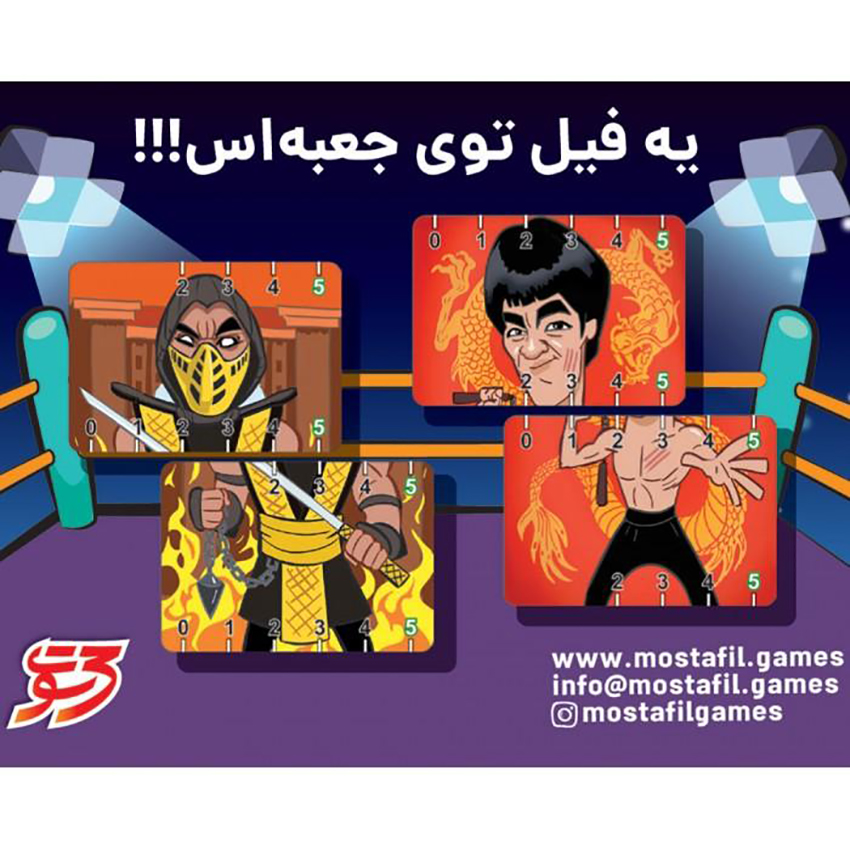 بازی ایرانی ناک اوت سه سوت در بـازی نــاکاوت، قهـرمانها تـوی رینـگ بوکـس با هم مـبـارزه میکنند و قصد دارند حریفشون رو توی 2 یا 3 راند شکست بدند. بتمن، راک، آرنولد، بروسلی، دارتویدر، هالک، اسکورپیون یا جیمزباند! قهرمان شما کدومشونه؟ اون رو بردارین و به جنگ حریفتون برین! بازی ایرانی ماشین جنگی سه سوت هـدف بازی: تصـورکـنین که تو جـنگ جهانی دوم، نه متحدین (آلمـان، ایتـالـیا و ژاپـن) نه مـتفقیـن (یعنی انگلـیس، امـریکا و شـوروی) با هـم همپیمـان نیـستنـد و هر کـشوری برای خـودش میجنگه! آره! تاریـخ تغـییر کرده و توی این بلـبشو، شمـا باید از قدرت نظامی این کشورها استفاده کنین و در جبهههای مختلف، حریفتون رو شکست بدین. ۳۰ کارت: توی بازی ۶ کشور با ۶ رنگ مختلف وجود داره. کشورها ۲ جور نیرو دارند: ماشین جنگی و پیادهنظام. هر کارت دو جهت داره: یک جهتش ماشین جنگیِ یک کشوره، و اون جهتش هم پیادهنظام یک کشور دیگه. علامتهایی هم که گوشۀ نیروها میبینین، قدرت هر نیرو رو نشون میده: پیادهنظام ۱ و ماشین جنگی ۲. اول بازی، با ۳ تا از کارتها «جبهۀ جنگ» رو میسازین. باقی کارتها، نیروهایی هستند که باهاشون تو بازی علیه دشمن مبارزه میکنین. بازی کارتی زیرخاکی برگرفته از بازی Dead Man’s Draw به این زمین پر از گنج و اشیای گرانبها خوش آمدی! شجاع باش و خاک ها را کنار بزن و تا میتوانی گنج های نهفته بدست بیاور، اما مراقب باش! اگر زیاد حرص بزنی ممکن است همه داشته هایت را از دست بدهی!! بازی کارتی و فکری زیرخاکی پر از تعلیق است که در آن هر بازیکن در نقش یک جوینده ی اشیای گرانبها، با یکی یکی رو کردن کارتهای گنج تلاش میکند تا بیشترین گنج را بدست بیاورد. هر کارت تازه ای که روو کند، اگر متفاوت باشد، گنجش افزون میشود و اگر تکراری باشد هر چه از زیر خاک در آورده بوده از چنگش میرود و نوبتش هم میسوزد. پس بفرما، اگر جراتش را داری یک کارت دیگر بکش…