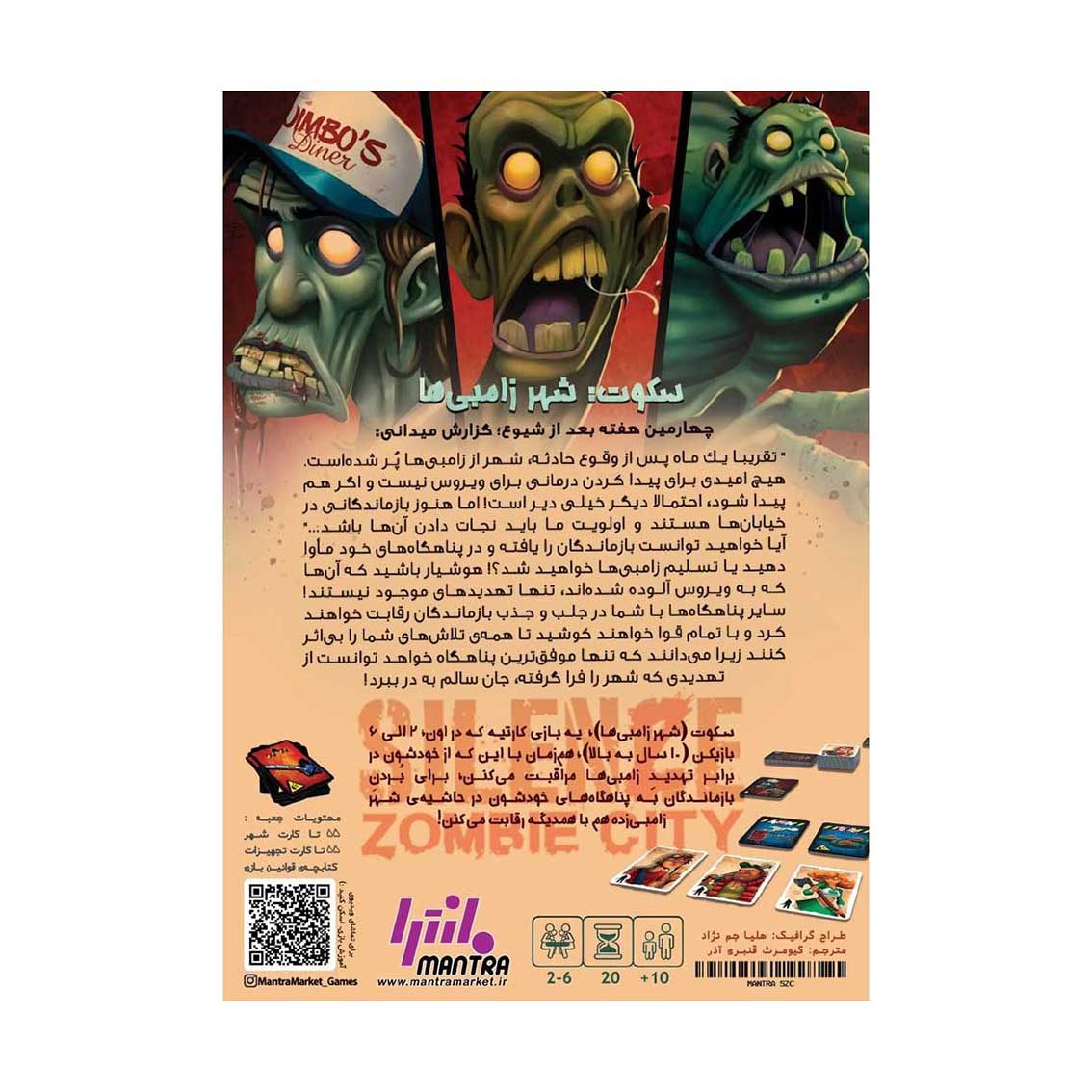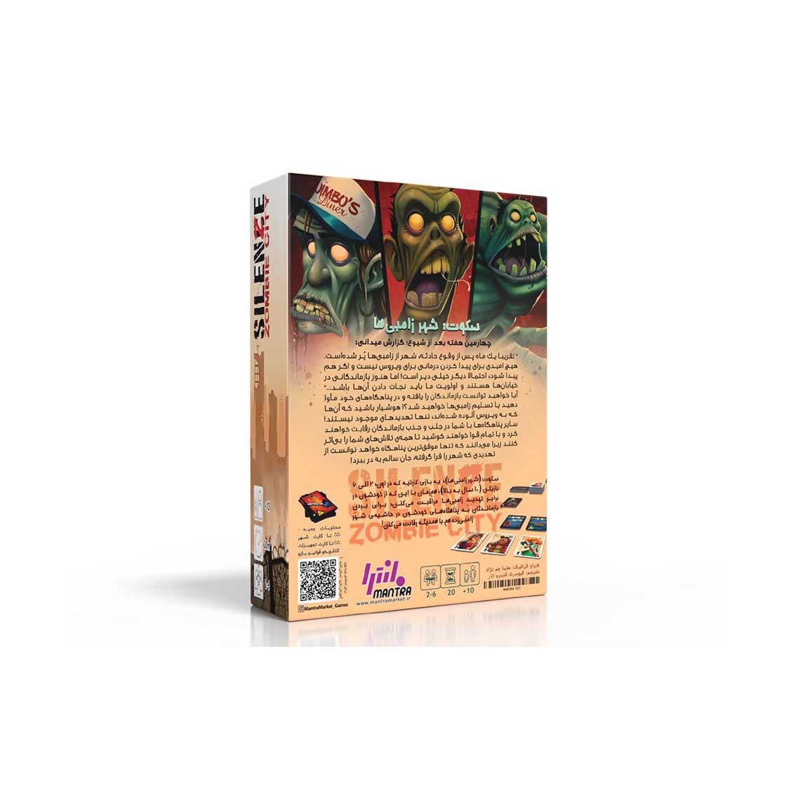 سکوت شهر زامبیها یه بازی کارتی هیجانانگیزه که توی دنیایی پر از زامبیهای وحشی و پناهگاههای در رقابت، باید برای زنده موندن و نجات بازماندهها بجنگی! بازیکنان باید همزمان با دفاع از خودشون در برابر زامبیها، تلاش کنن که بازماندههای بیشتری رو به پناهگاهشون برسونن، اما مراقب باش! بقیهی بازیکنان هم برای نجات خودشون و شکست تو نقشه دارن!