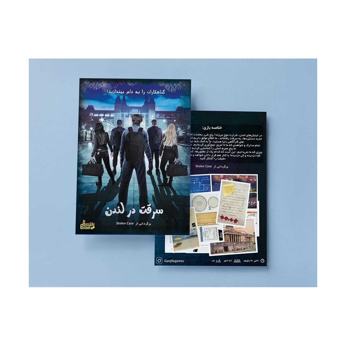 تو خیابونای لندن، یه سری دزدی خفن اتفاق افتاده و پنج تا شیء خیلی باارزش رو بردن. حالا نوبت شماست که به‌عنوان یه تیم کارآگاهی حرفه‌ای وارد عمل بشید و بفهمید کی، چی رو، از کجا و کی دزدیده! تو این بسته، کلی سرنخ و مدرک هست که باید دونه‌به‌دونه کنار هم بذارید و پرده از راز این سرقت‌ها بردارید. ما پنج تا مظنون داریم: النور فاکس بدنام، پی‌یر لو فانتوم بدذات، کلمان برناردی موذی، کته هاینریش شرور و سباستین لانسکی شیطان‌صفت! ولی هنوز معلوم نیست کی کدوم دزدی رو انجام داده. این یه بازی معمایی-جنایی هیجان‌انگیزه که می‌تونید به‌صورت تک‌نفره یا با دوستاتون (تا ۶ نفر) بازی کنید. حدود ۱ تا ۲ ساعت طول می‌کشه و تو حین بازی ممکنه به اینترنت نیاز داشته باشید تا سرنخ‌های بیشتری پیدا کنید. اگه گیر افتادید، می‌تونید به سایت Ganjifa.ir برید و ازش راهنمایی بگیرید.