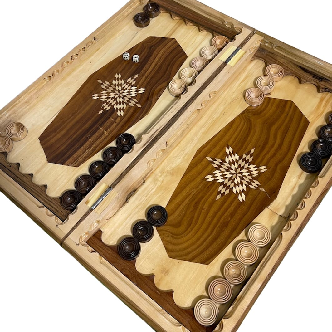 تخته نرد چوب گردو طرح هشتپر لبه گرد