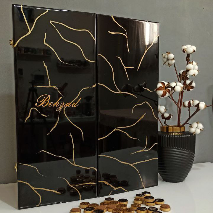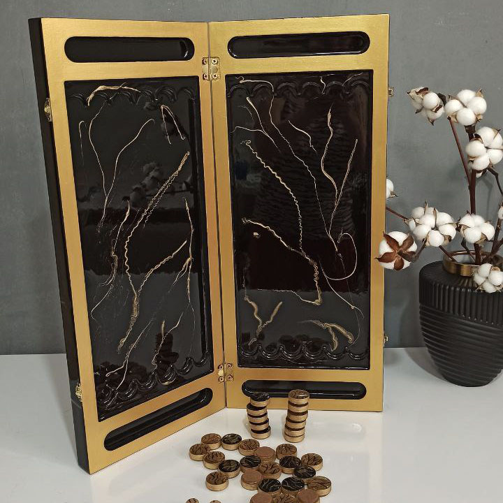 تخته نرد رزین طرح مرمر مشکی طلایی کد d150011