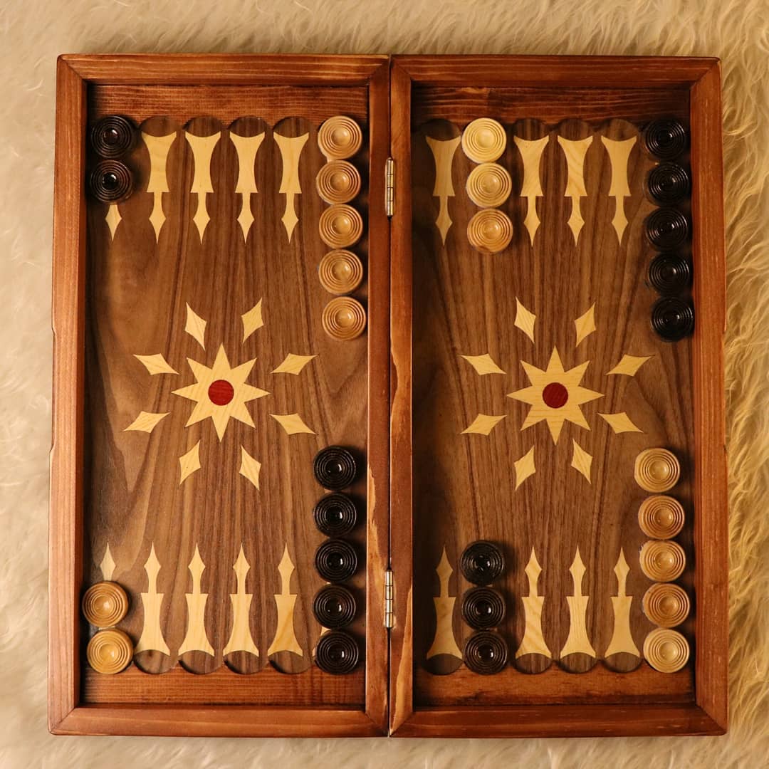 تخته نرد چوب گردو سنندج دور منبت کاری