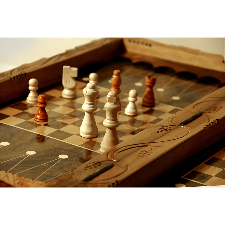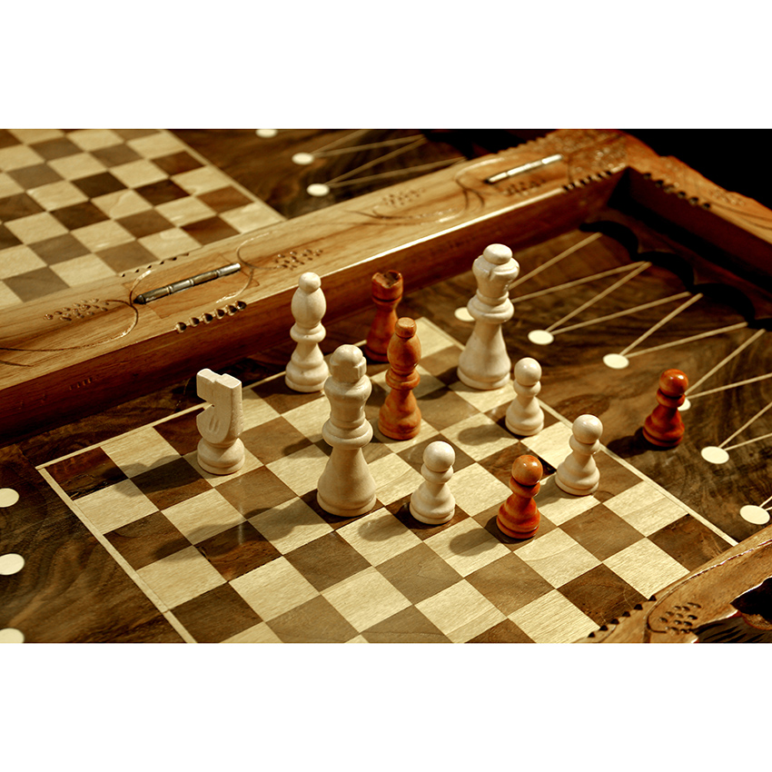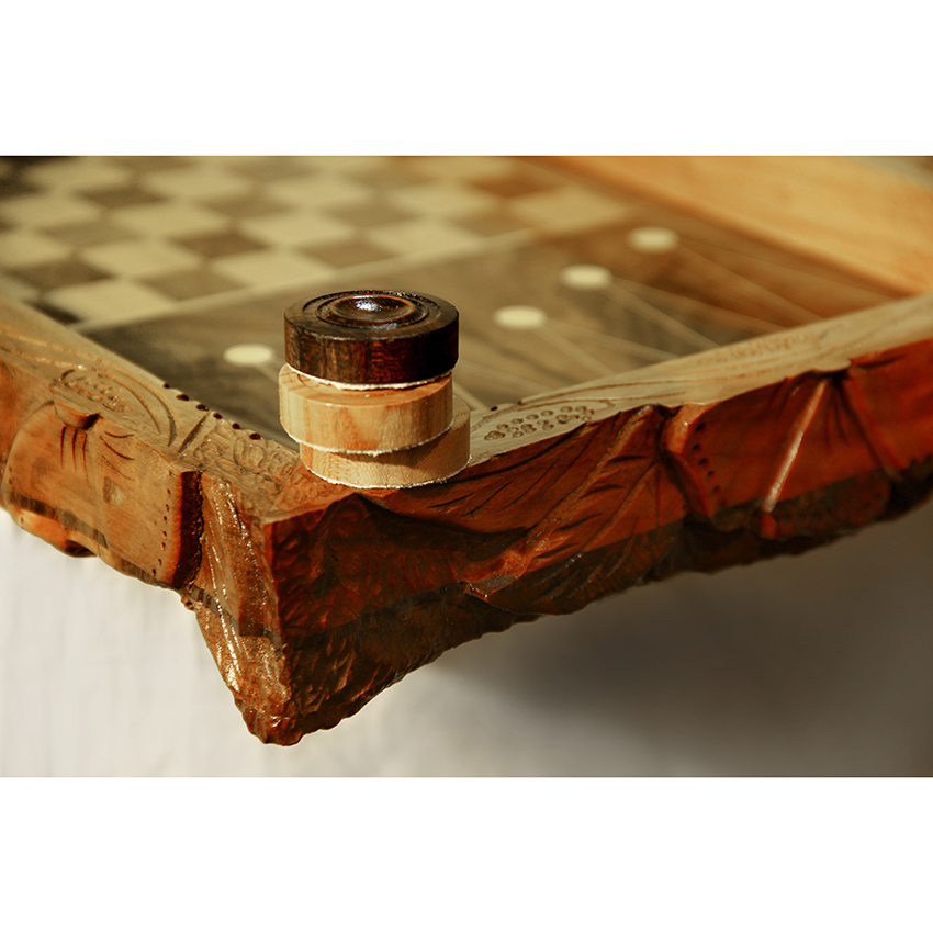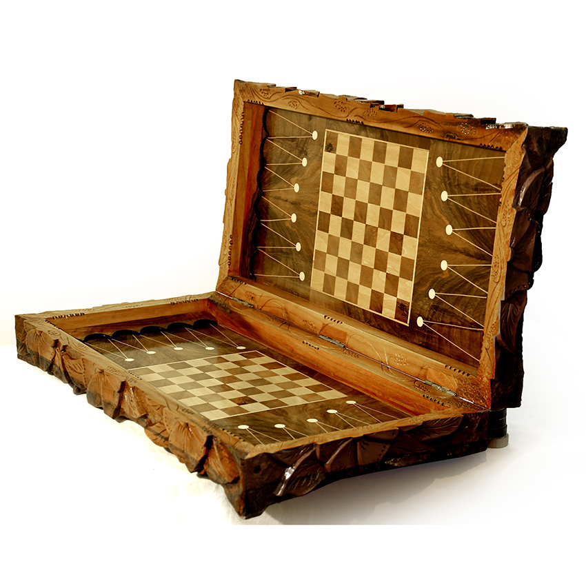 صفحه شطرنج نیز داخل تخته قرار دارد و با عمق مناسب طراحی شده تا تاسها به بیرون پرتاب نشوند.