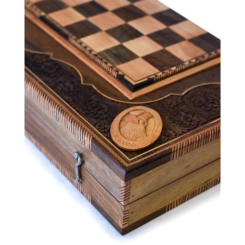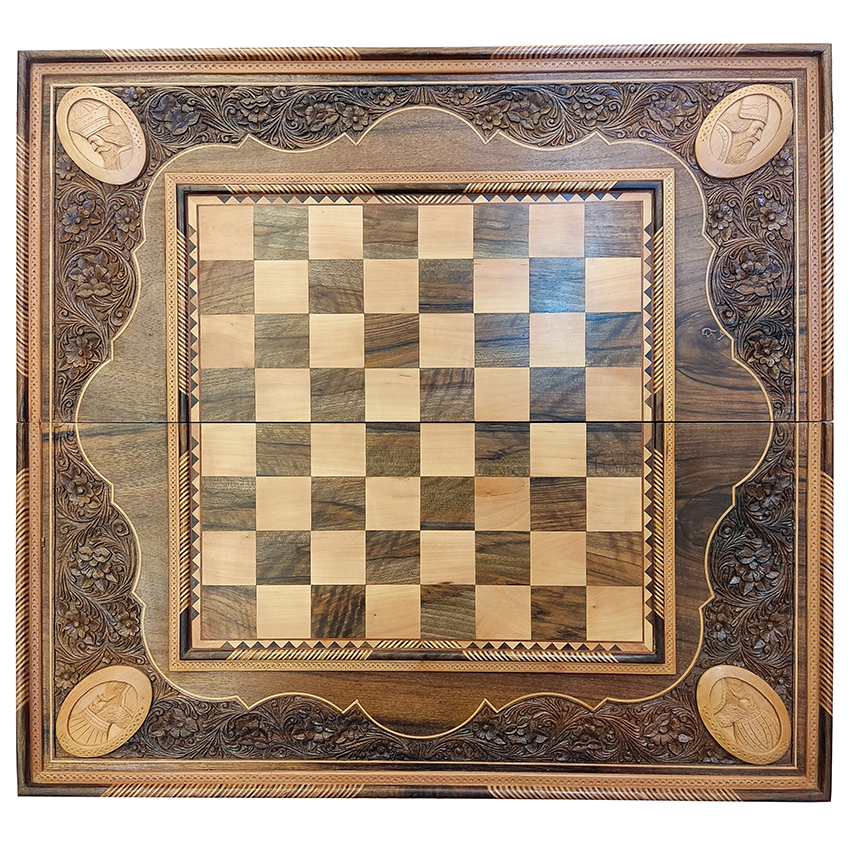 تخته نرد و شطرنج منبت کاری طرح چهار پادشاه k