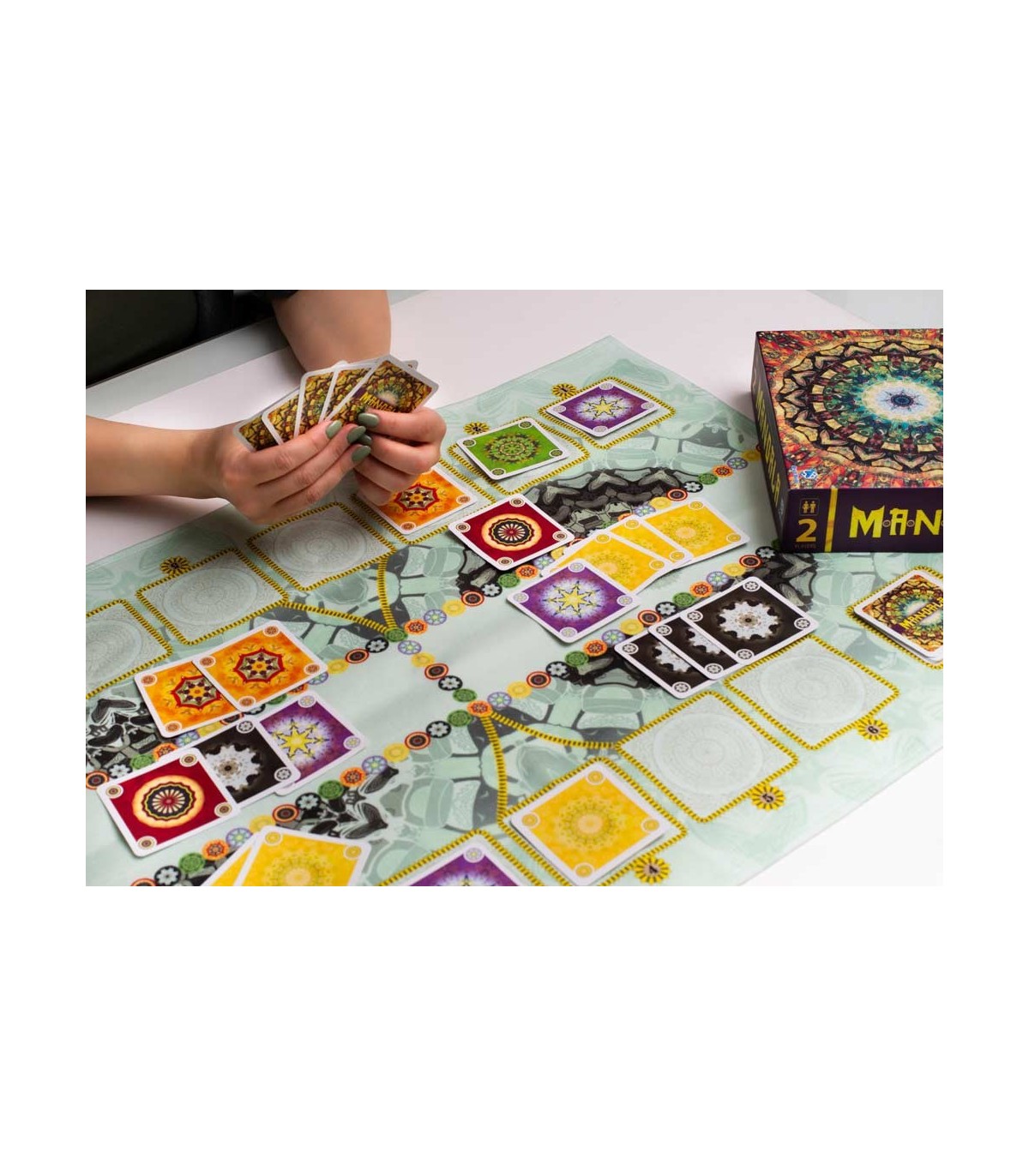 تو این بازی، شما وارد دنیای نمادین ماندالا میشید، جایی که باید با استفاده از شنهای رنگی، نقشهای از جهان بسازید و سپس آن را نابود کنید تا چرخه زندگی و مرگ ادامه پیدا کنه! 🌈🌀 هدف اینه که با بازی کردن کارتهای شن رنگی در ماندالاها، کنترل بیشتری روی اونها به دست بیاری و در نهایت، کارتهای بیشتری رو برای خودت جمع کنی. هر بازیکن در نوبت خودش میتونه کارتها رو در کوهستان (وسط ماندالا) یا زمین خودش بازی کنه. وقتی همه ۶ رنگ در یک ماندالا جمع بشن، اون ماندالا کامل میشه و باید نابود بشه. بازیکنی که بیشترین کارت رو در زمین خودش بازی کرده باشه، اولویت داره که کارتهای کوهستان رو برداره و به رودخانه یا جام خودش اضافه کنه. بازی پر از استراتژی و تاکتیکه. باید با دقت کارتها رو مدیریت کنی و از قانون رنگ پیروی کنی تا بتونی بیشترین امتیاز رو به دست بیاری. در پایان بازی، بازیکنی که بیشترین امتیاز رو داشته باشه، برندهست!